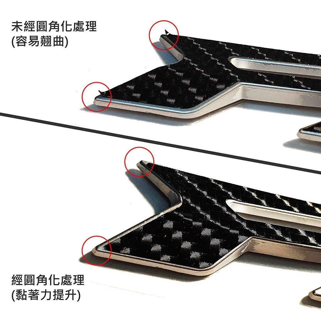 註:本產品為黏貼於原廠車標上展現不同於原廠塑膠表面的碳纖維質感貼紙,非塑膠射出之立體車標,SIREN以3D光學掃描製版,日本進口切割機精密生產,完全服貼原廠車標,小小花費,大大改變
