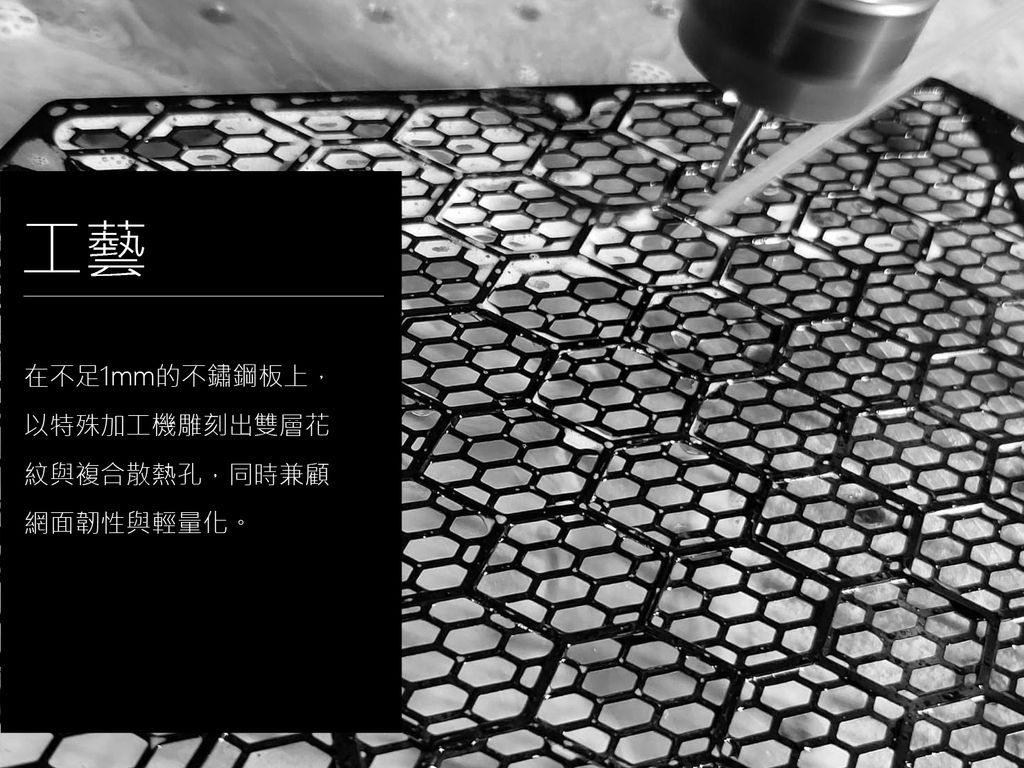 立體網面工藝:不足 1mm 薄鋼精密切削,展現工藝層次
