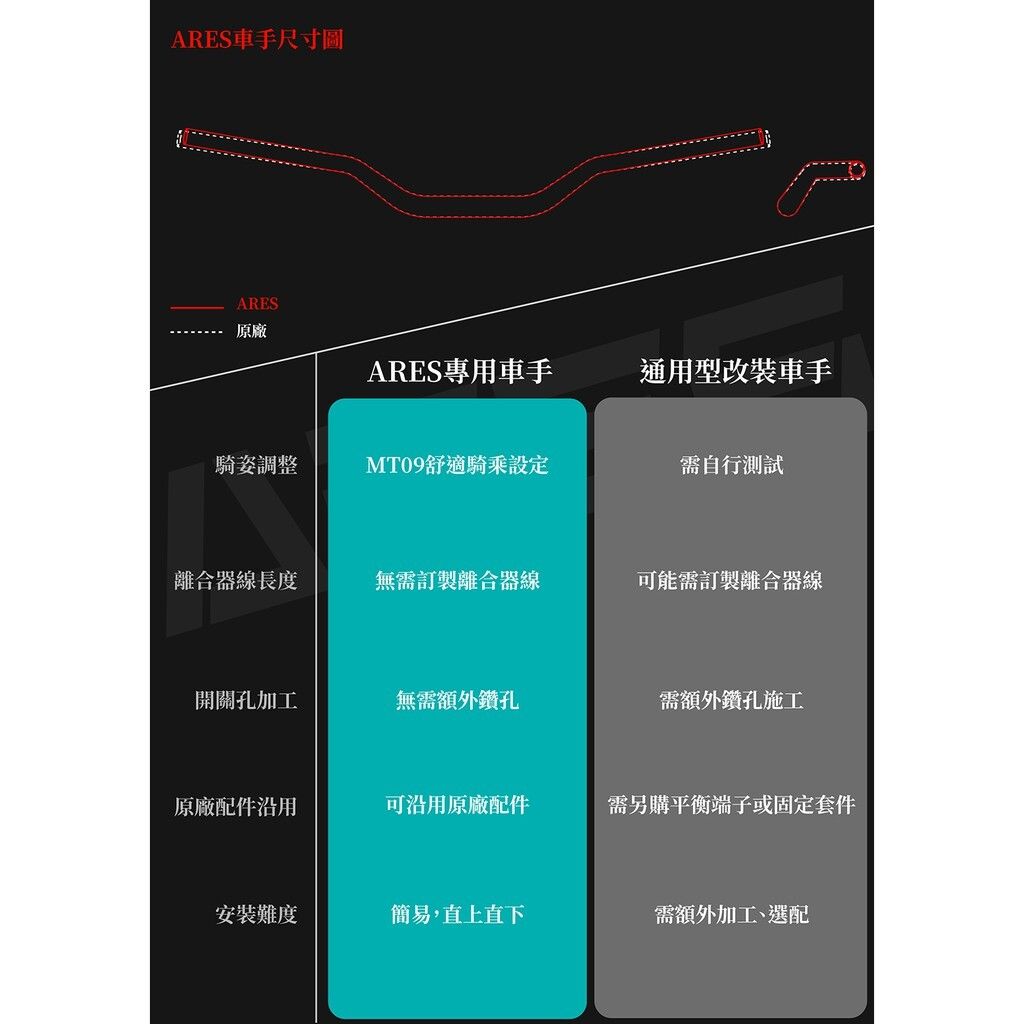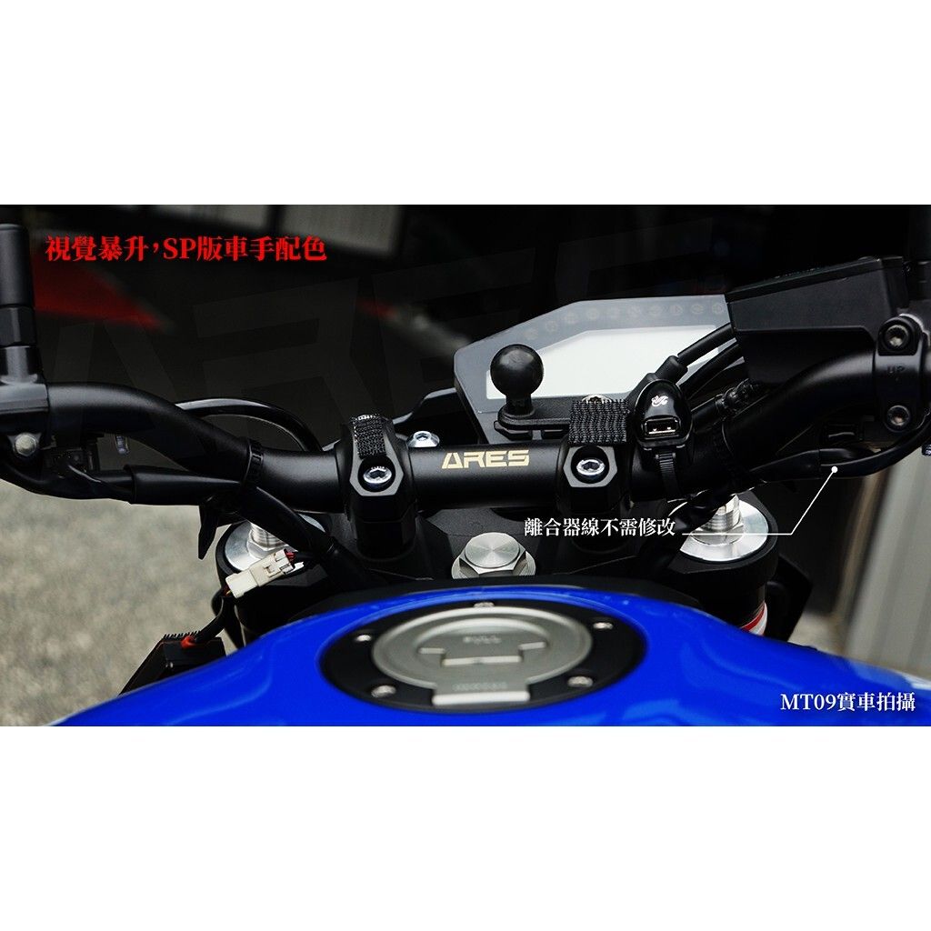 專為 YAMAHA MT-09 (2014-2020) 打造的 ARES 舒適設定升級型車手,以鋁鎂合金製成,採用 SP 陽極黑工藝,兼具剛性、輕量與質感。免修改即可直上,完美沿用原廠配件,是長途騎乘與風格升級的最佳選擇。